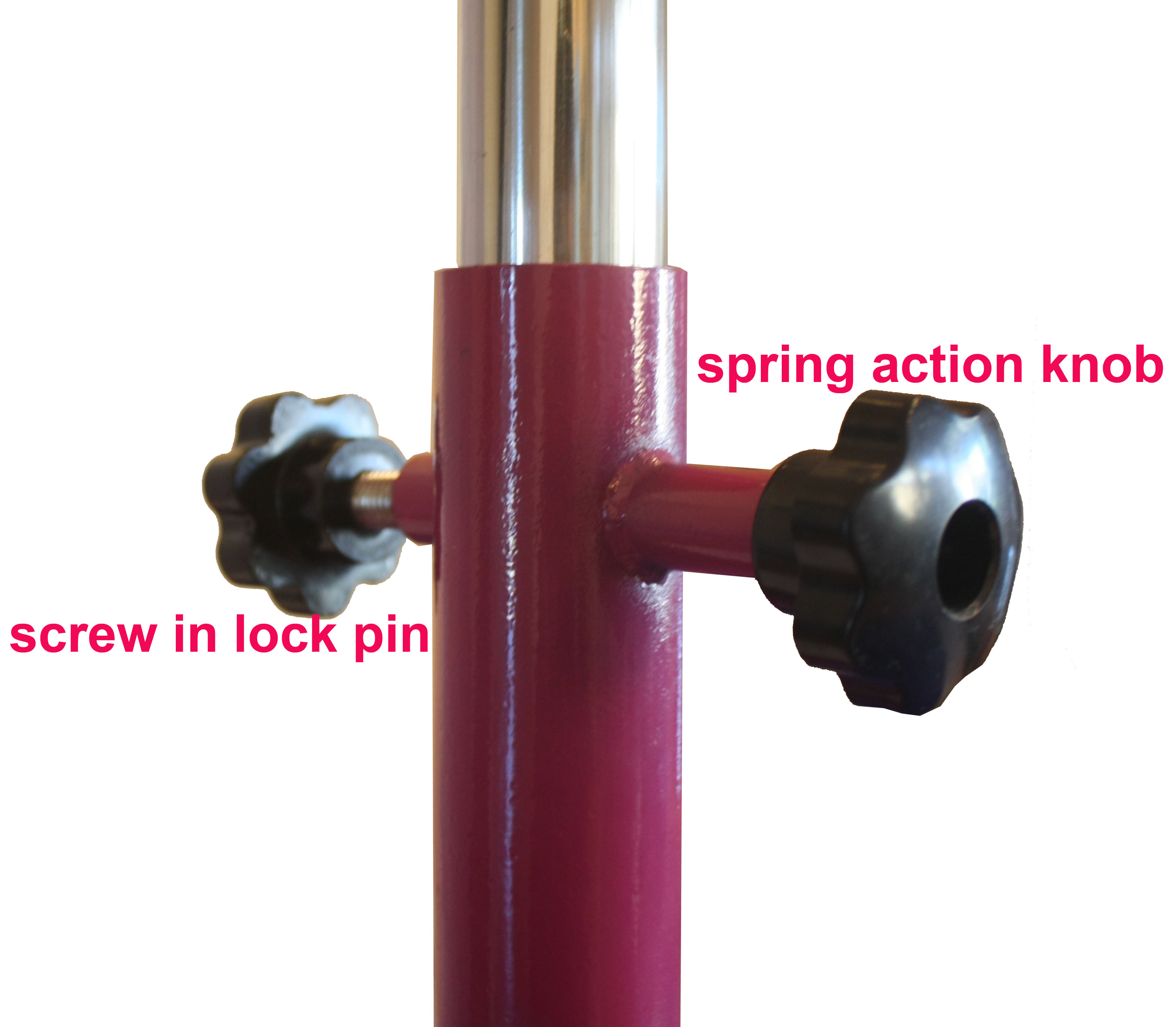 - Double locking Mechanism, one spring loaded knob and one lock down knob (safety)